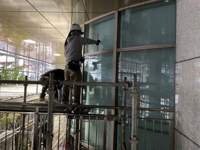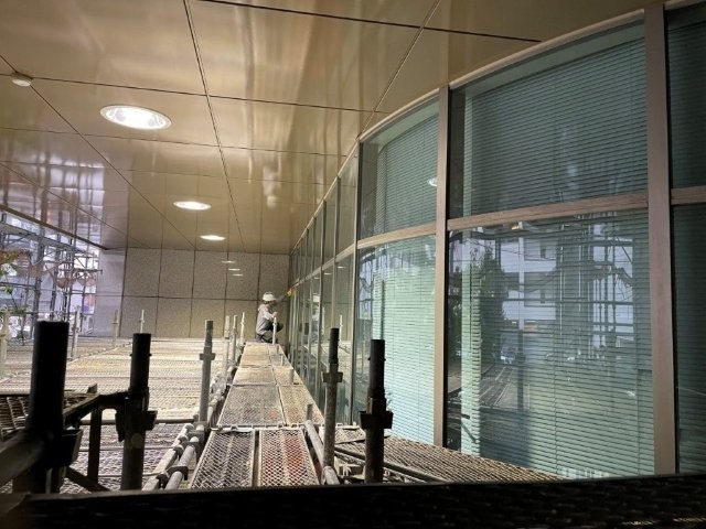カーテンウォール清掃作業